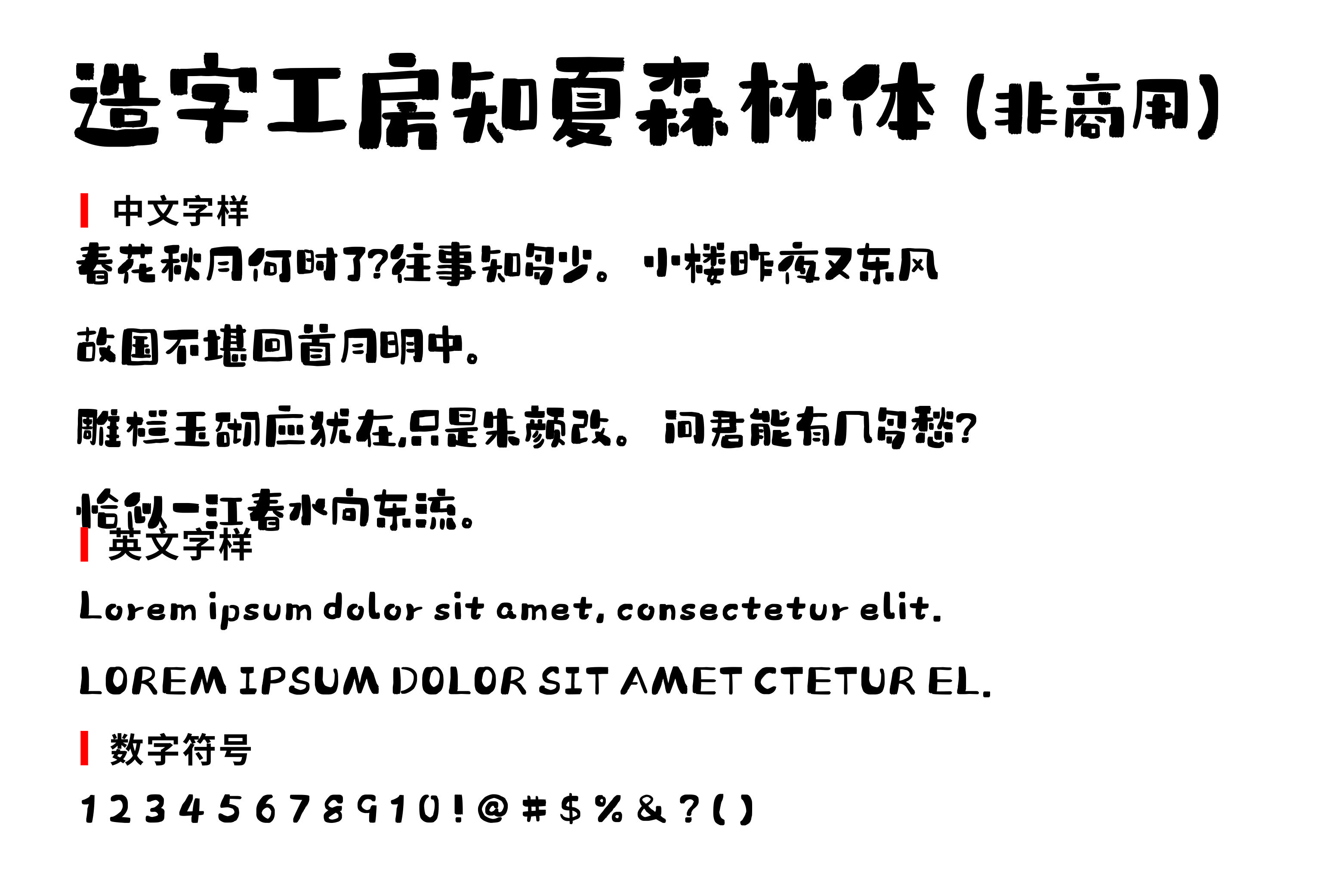 当前字体名称为造字工房知夏森林体(非商用), 格式为 TTF, 下载后直接点击打开安装使用,更多字体请关注”西部素材网”。