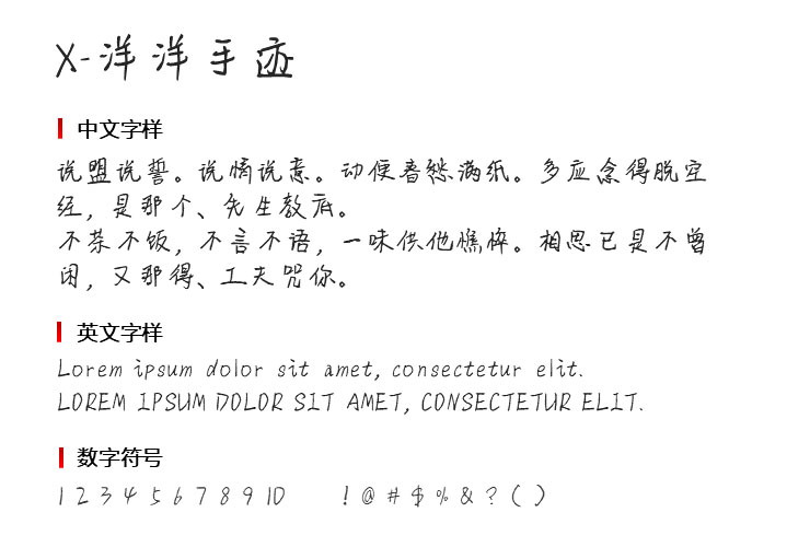 当前字体名称为X-洋洋手迹字体, 格式为 TTF, 下载后直接点击打开安装使用,更多字体请关注”西部素材网”。