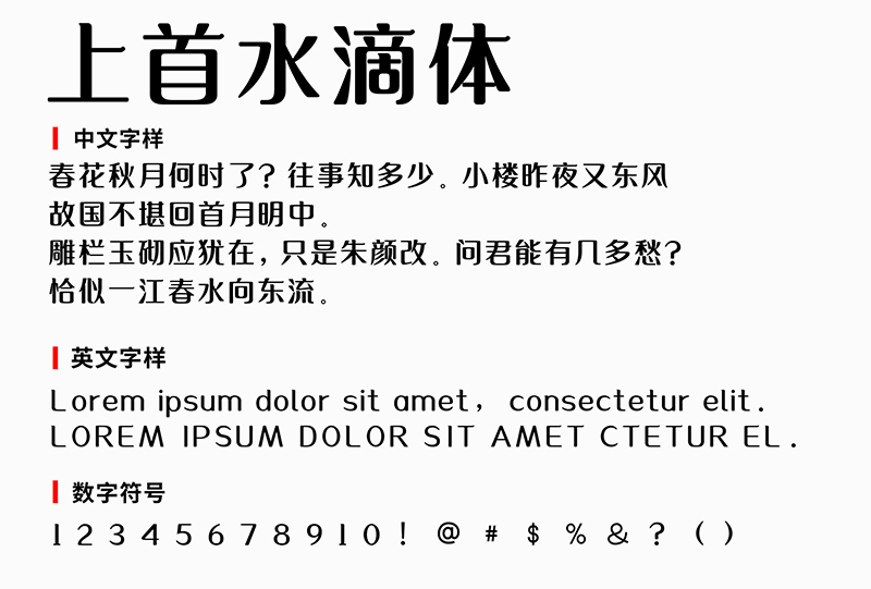 当前字体名称为014-上首水滴体, 格式为 TTF, 下载后直接点击打开安装使用,更多字体请关注”西部素材网”。