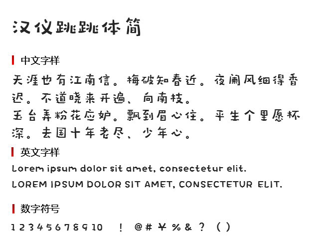 当前字体名称为汉仪跳跳体简, 授权方式为个人非商用, 下载后直接点击打开安装使用,更多字体请关注”西部素材网”。