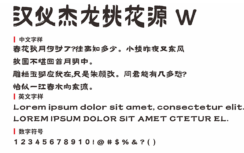 当前字体名称为汉仪杰龙桃花源W, 格式为 TTF, 下载后直接点击打开安装使用,更多字体请关注”西部素材网”。